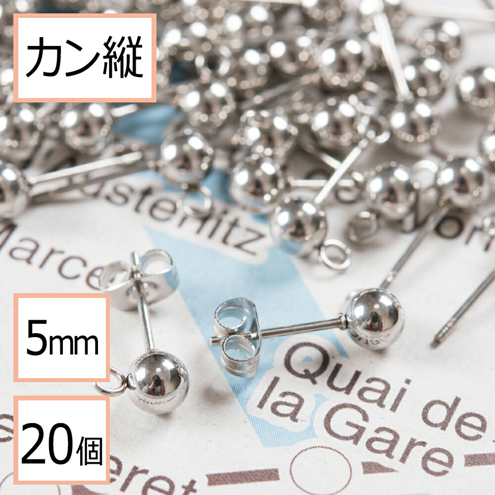 【サージカルステンレス 316L 】カン付き ボール ピアス シルバー 5mm ×シルバーキャッチ (カンの向き:縦) 20個 (10ペア) ステンレス パーツ 金属アレルギー対策 アクセサリー パーツ