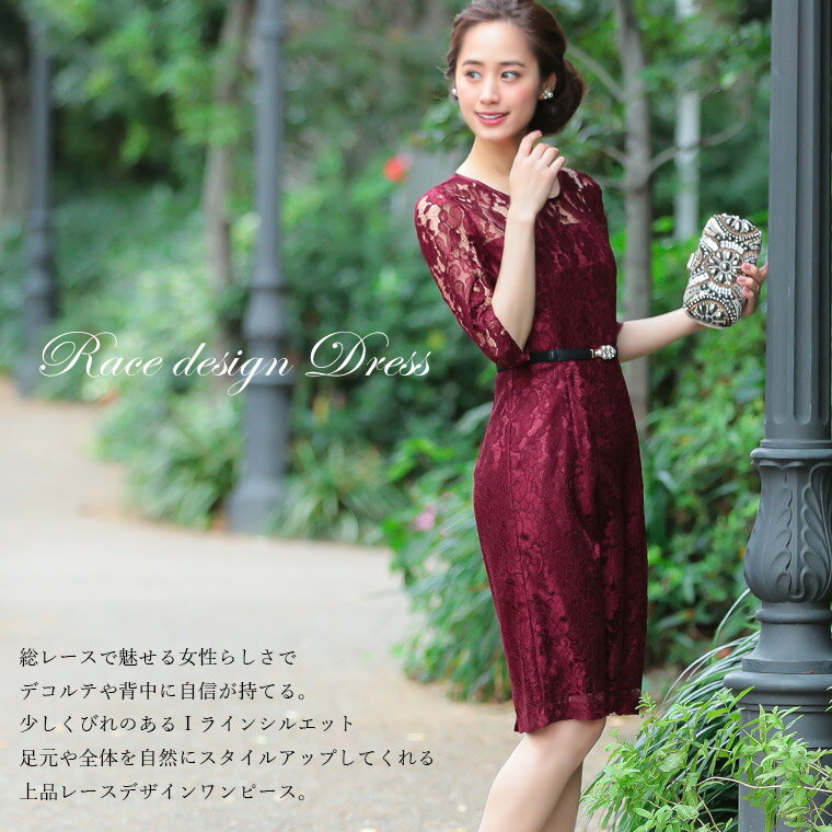 商品詳細 サイズ 身丈 肩幅 バスト ウエスト 袖丈 袖口 裾幅 M 98cm 36cm 90cm 66cm 38cm 25cm 44cm L 100cm 37cm 94cm 70cm 39cm 26cm 46cm モデル H:162 B:78 W:58 H:83 size:M カラー ネイビー/ ワイン / グレー 素材 表地/別布/裏地:ポリエステル100% 生産国 中国 お手入れ方法 備考 【詳細】 上品な総レースをあしらったドレスワンピース。