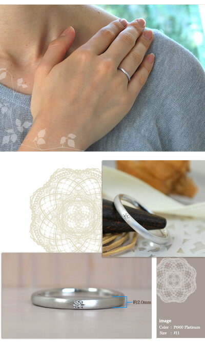 大きさ 最大 幅:約2mm 厚み:約1.5mm 材質 地金 Pt900 プラチナ 使用石 ダイヤモンド1pcs 0.005ct 備考 * 宝石にはひとつひとつに色味のちがいや濃淡があるため、またご使用のブラウザによっては画像と実物に若干の違いがでる場合がございます。