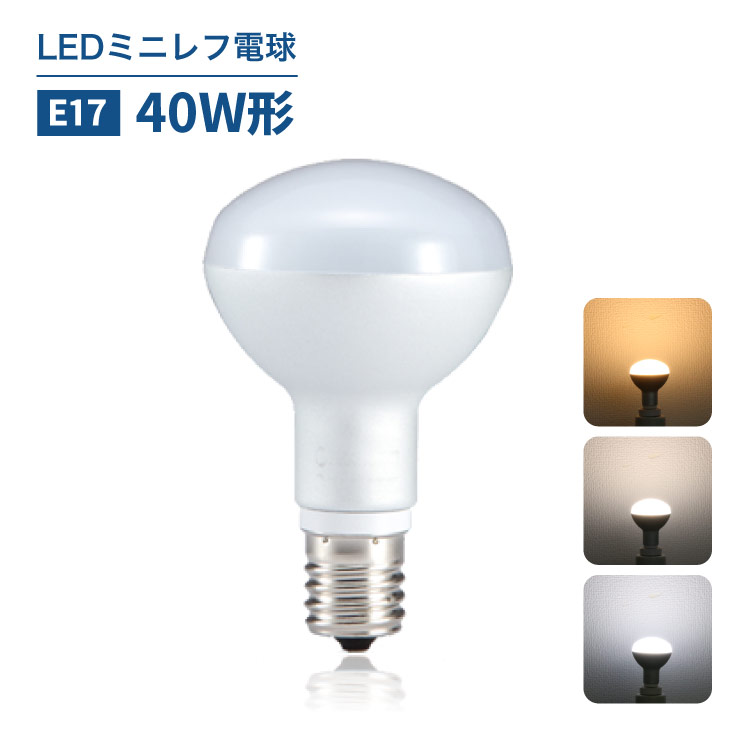 LEDミニレフ電球 40W形相当 E17 led電球 ledライト 電球色 白色 昼白色 レフ電球 一般電球 ミニレフ 工事不要 簡単設置のLED電球 ダクトレール ライティングレール(CH-R50-4W-E17)