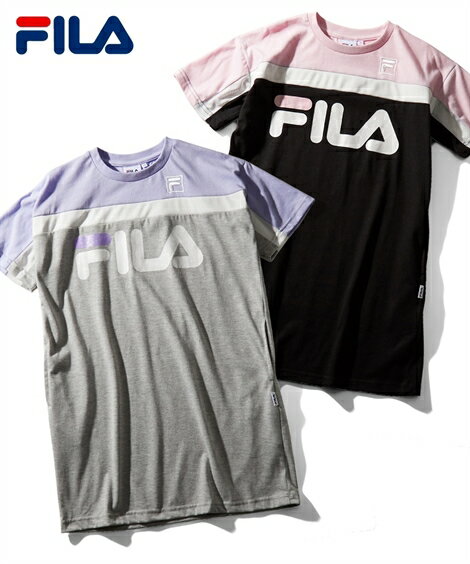 【ポイント5倍】 FILA フィラ レディース ロゴニットテープTワンピ 高校生 中学生 小学生 スポーツブランド 女の子 かっこいい かわいい おしゃれ ロゴ テープ Tシャツ ワンピース Tワンピ 半袖 シンプル ブランド キッズ カジュアル outfit
