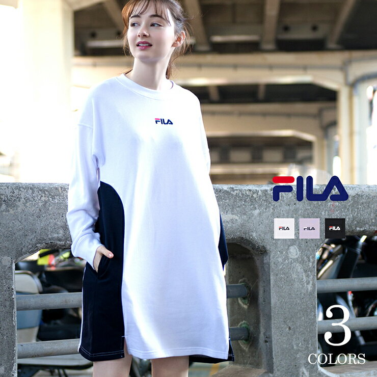 【ポイント5倍】 FILA フィラ レディース スウェットワンピ FILA フィラ レディース スウェットワンピ レディース ワンピース ブランド トップス スウェット プルオーバー 春 秋 服 ロゴ 人気 プレゼント 長袖 おしゃれ 男女兼用 ホワイト ブラック パープル