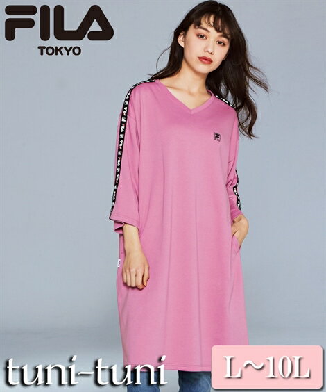 FILA ワンピース ミニ 大きいサイズ レディース UVカット 7分袖 カットソー フレア 消臭テープ付 スモーキーピンク/黒/杢グレー L/LL/3L ニッセン nissen
